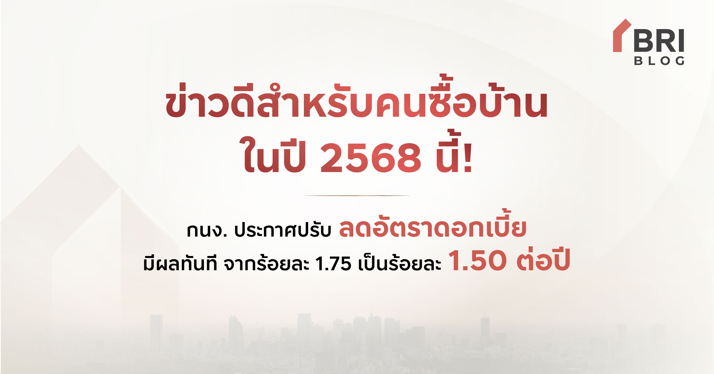 ข่าวดีซื้อบ้านและคอนโดในปี 2568 กนง. ลดอัตราดอกเบี้ยนโยบาย 0.25% เป็น 1.50% ต่อปี