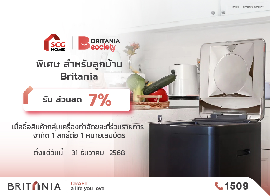สิทธิพิเศษ : ส่วนลด 7% เมื่อซื้อสินค้ากลุ่มเครื่องกำจัดขยะที่ร่วมรายการ จำกัด 1 สิทธิ์ต่อ 1 หมายเลขบัตร ใช้ได้ที่ : SCG Home ระยะเวลาการรับสิทธิ์ วันนี้ – 31 ธันวาคม 2568 รายละเอียดและเงื่อนไข