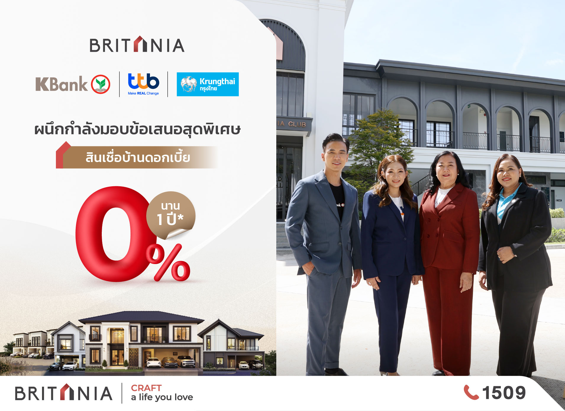 บริทาเนีย ผนึกกำลัง 3 ธนาคาร “KBank-ttb-KTB” มอบข้อเสนอสุดพิเศษ สินเชื่อบ้านดอกเบี้ย 0% นาน 1 ปี*